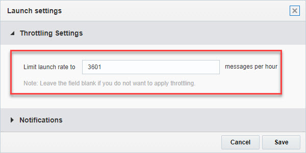 If you do not want to use throttling for the campaign, leave this is field blank.