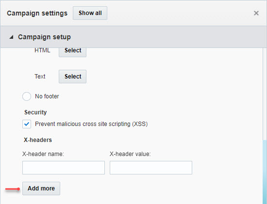 - In the Campaign setup section, click Add more to add additional x-headers.