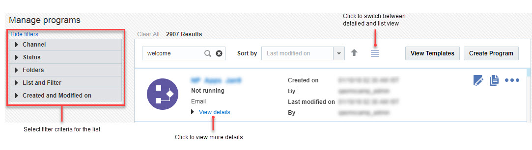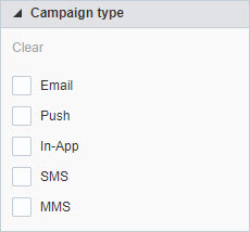 With this update, you can filter campaigns by campaign type on the Manage Campaigns page and the Campaign Monitor.