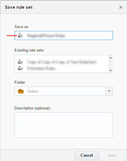 . - In the Save rule set dialog, type the name and select the folder for the Rule Set, then click Save.