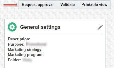 - To enable this feature, click Define campaign approval settings on the Account Management page, and select Require approvals for all new and modified campaigns.