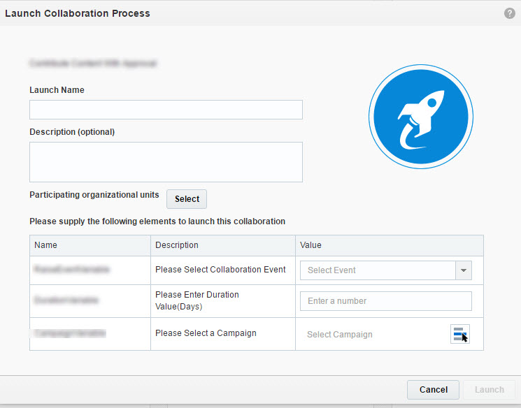 Users with the Collaboration Process Launcher role can use the new Launch Collaboration Process dialog to launch published processes.