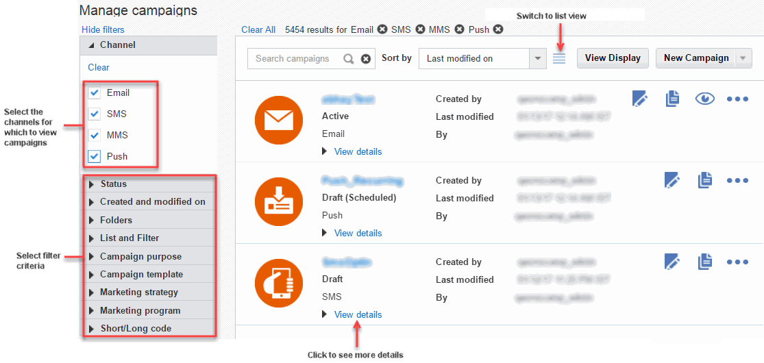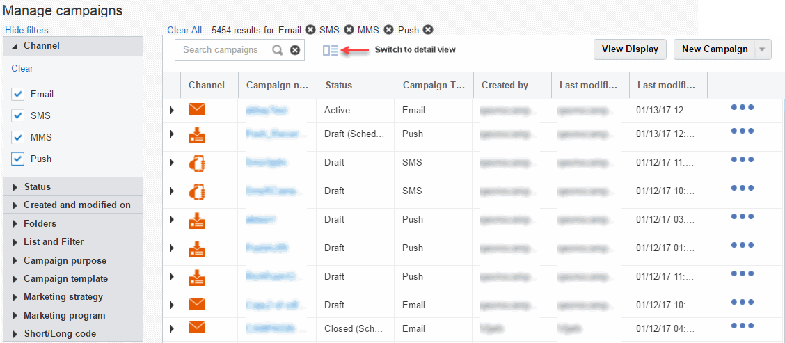 In this release, we updated the interface and workflow of the SMS Campaign Designer to match that of the Email and Push Campaign Designers. In addition, we upgraded the SMS Campaign Designer to the ALTA design style used across Oracle Cloud products.