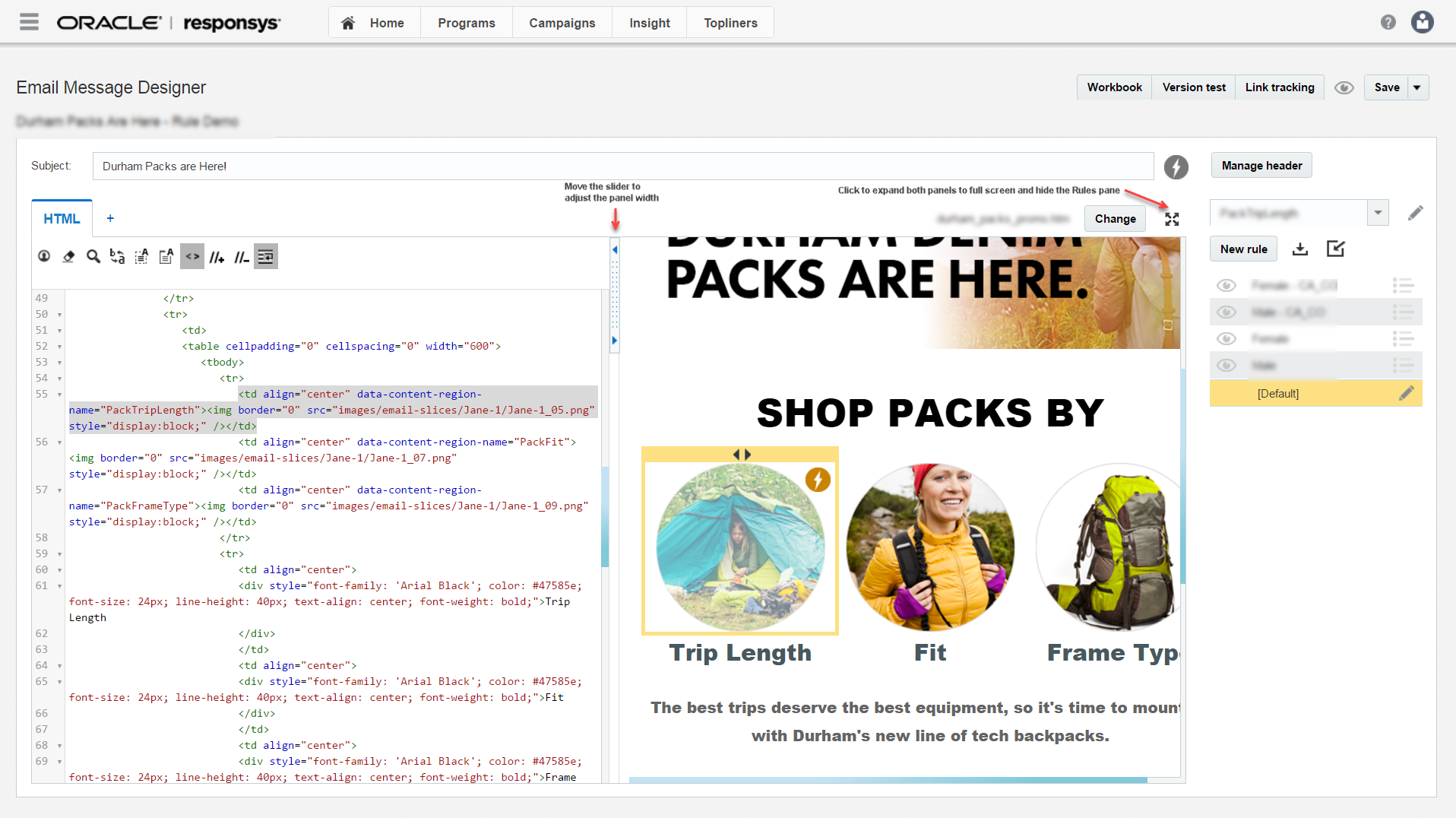The Split View Editor introduces a new way to edit HTML documents in Email Message Designer and Content Library.