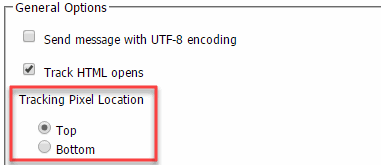 - In the General Options section of the Set Campaign Defaults page, select the Top or Bottom tracking pixel location.