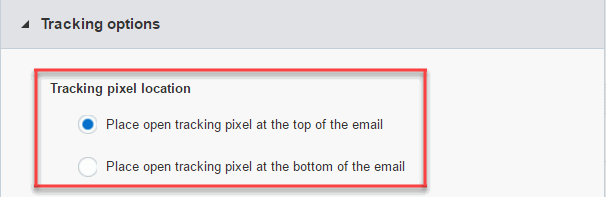 - Open the Campaign Settings section in the Campaign Workbook, expand the Tracking Options section, and select the Tracking pixel location.