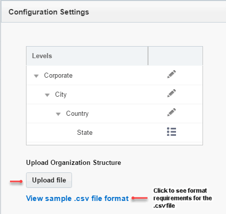 The Account Administrator can now upload Organizational Hierarchy additions, edits, and deletions in bulk via a .csv file.