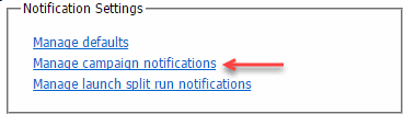 - Click the new Manage campaign notifications or Manage launch split run notifications link in the Notification Settings section of the Account Management page.