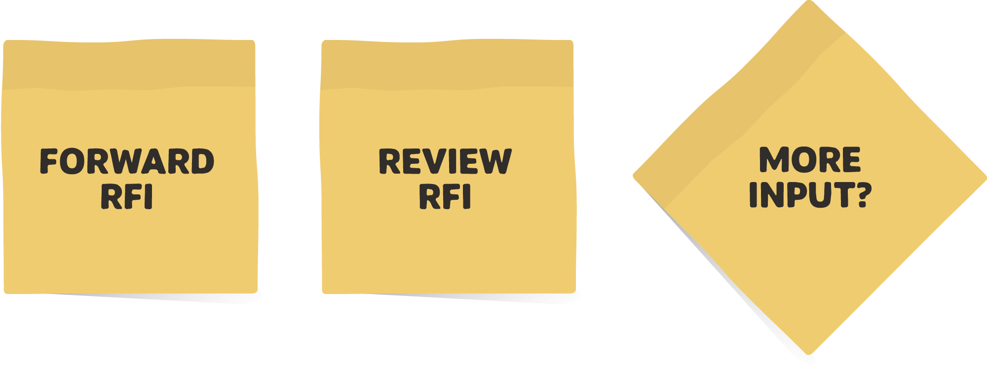 Use a sticky note for each action and task. Place them on the whiteboard as you go. And... turn a sticky note 45 degrees to create decisions or questions. It doesn't have to be pretty. Concentrate on getting the elements right and, in the right order.