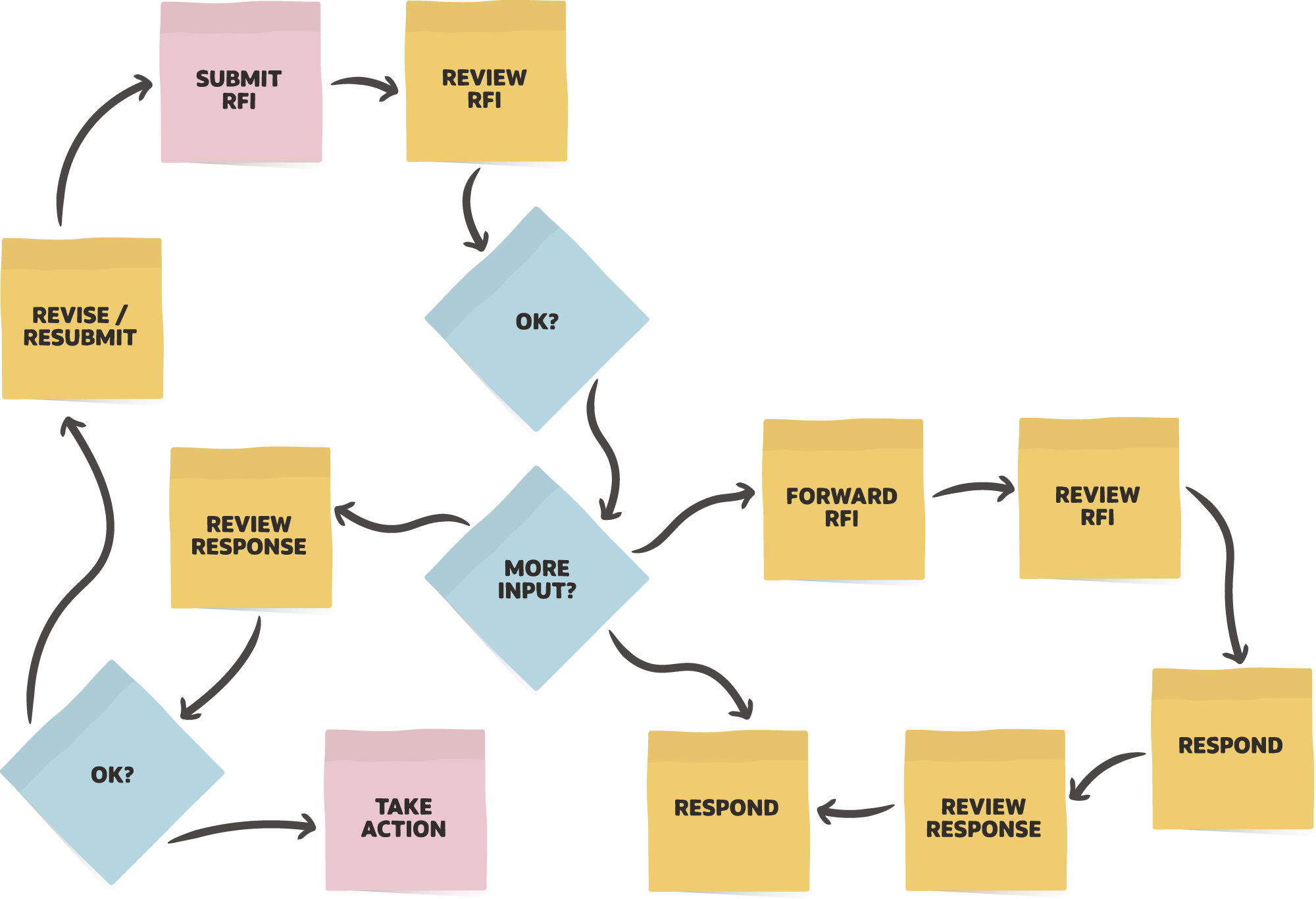Just remember, a simple diagram with as few steps as possible, is easier for people to follow and, more importantly, actually use. Simple is open to interpretation, but a flow diagram must be understood by its intended audience and they should be able to follow it without any additional training or guidance.