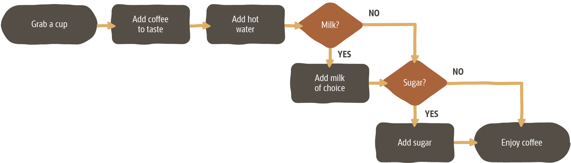 A great one to practice with is a simple flowchart that explains how to make a cup of coffee. Sounds simple right? You'll be surprised how tricky it can be to map a process that we think we're very familiar with.