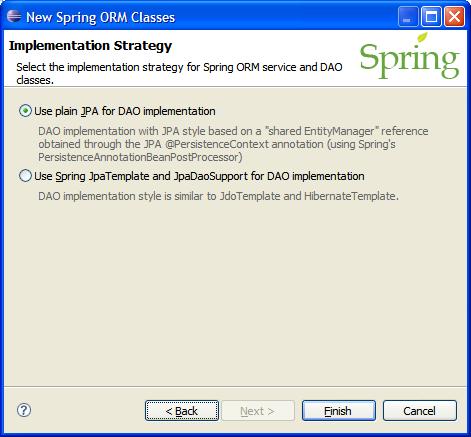 - Click Next to select the "Use plain JPA for DAO implementation" and