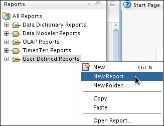 In the Reports tab, right-click User Defined Reports, and select New Report.