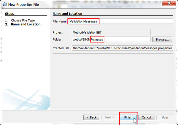 a. Enter ValidationMessages for File Name.c. Click Finish.