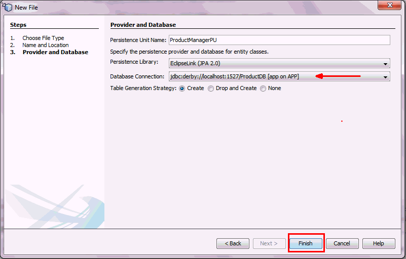 In the Create Java DB Database dialog box, enter the following details and click OK: