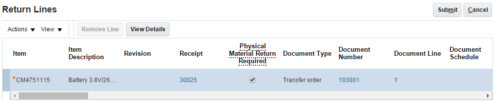 - Set the Physical Material Return Required option.