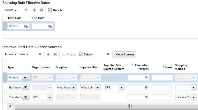 It takes a request to create supply from various Oracle Cloud products, such as Oracle Fusion Planning Central, Oracle Fusion Inventory Management, and Oracle Fusion Global Order Promising. After receiving these supply requests, Supply Chain Orchestration launches and manages complex supply-creation processes to create supply in designated warehouses in order to fulfill demand.