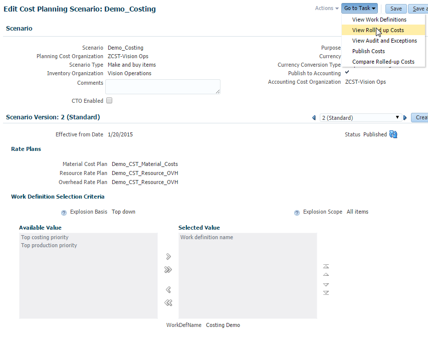 - Navigate to Manufacturing Work Definition work area.