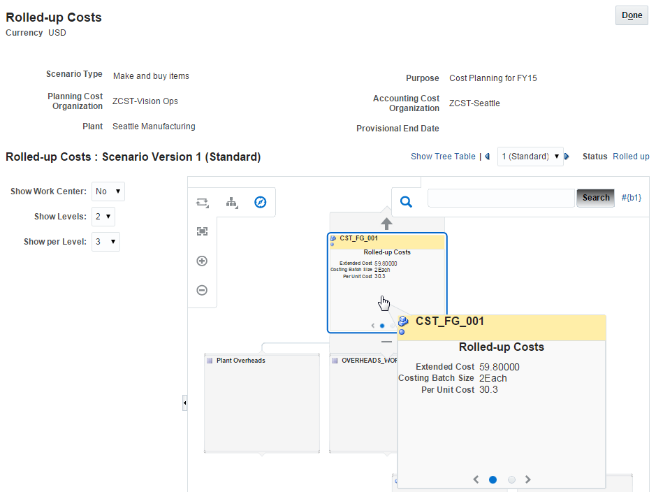 In order to estimate, record, and monitor production costs, Oracle Manufacturing Cloud provides comprehensive cost management capabilities for cost planning and work order costing. For additional details, please refer to the Cost Management section of this document.