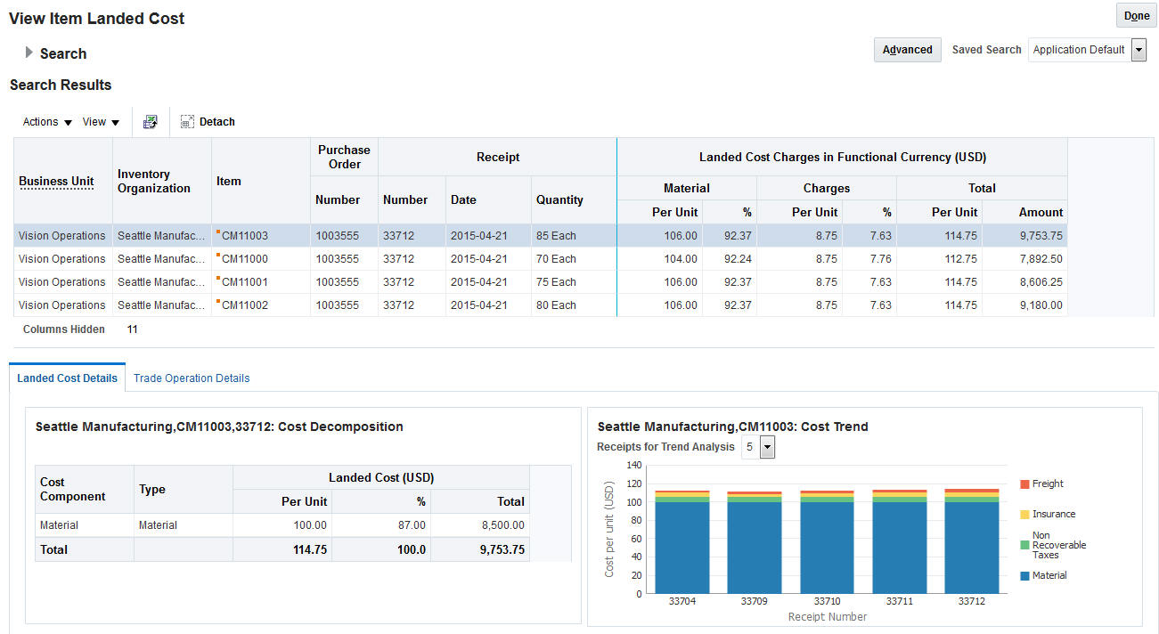 Oracle Fusion Cost Management supports internal material transfer flows and can help you to improve efficiency in your supply chain. You can monitor trade flow costs, and use an audit trail that includes transfer prices and costs for shipments across your business units.