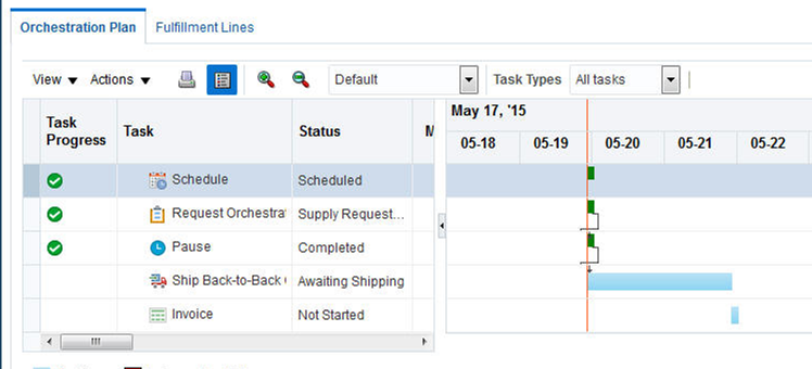 Supply Chain Orchestration also provides users complete visibility into the progress of the supply that is being created and the relationship between various documents of a flow.