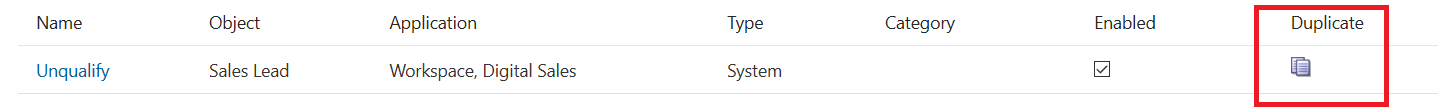 - Find the action that you want to copy and click the Duplicate icon.