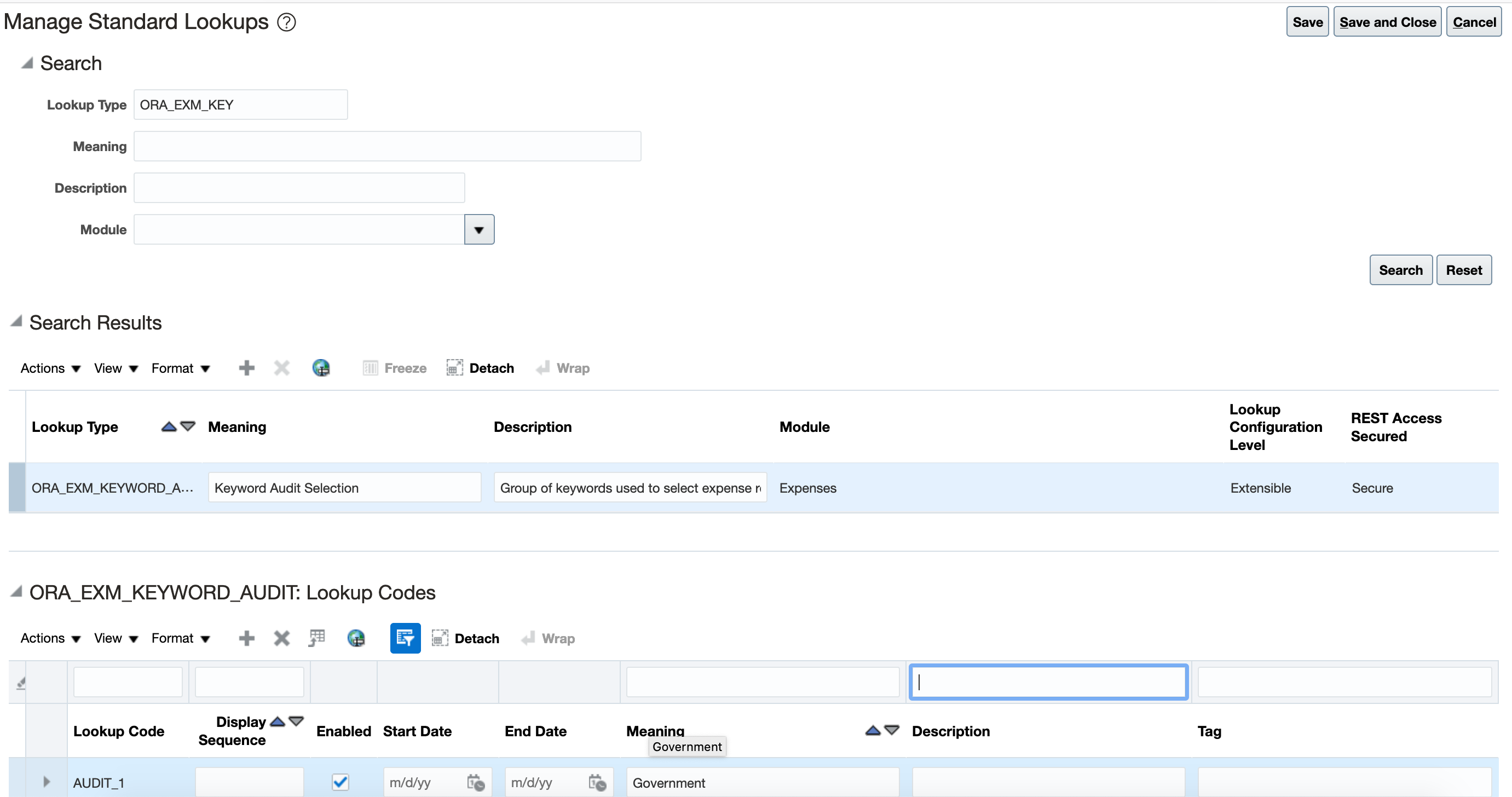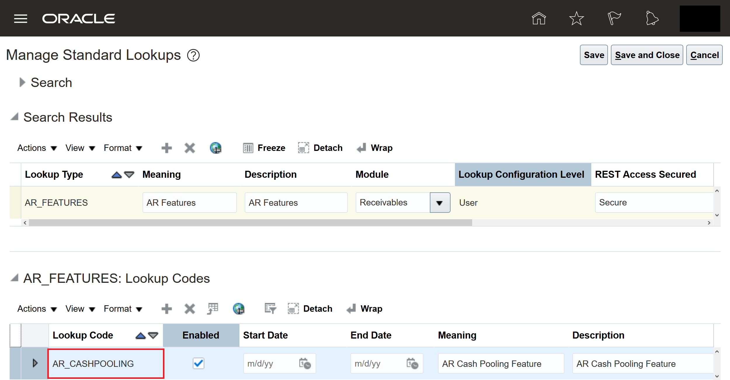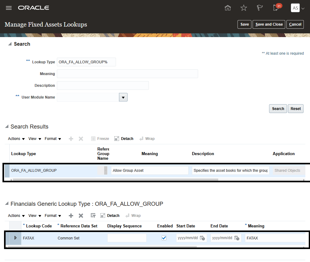 Tax Reporting Type Code Data Type Tax Reporting Code Description Effective Start Date Effective End Date ORA_JA_IN_EINV_REGN_TYPE Yes or no indicator Y Yes 7/1/2017 - Click Save and Close.