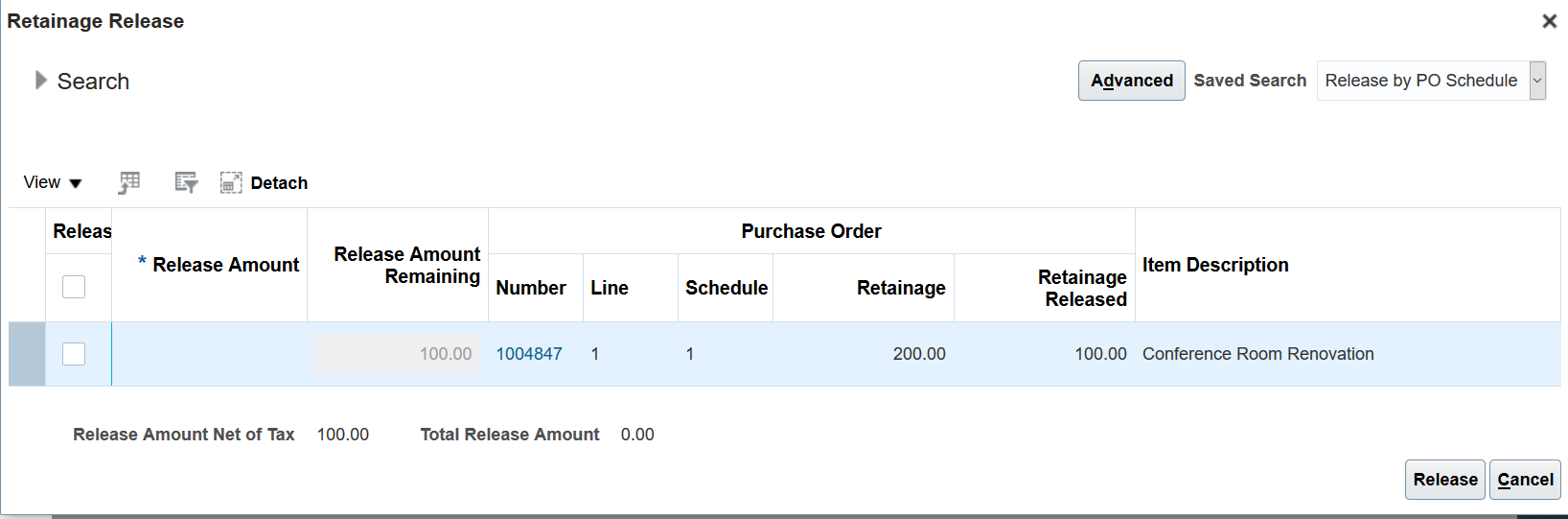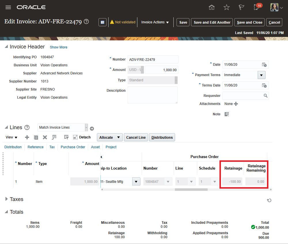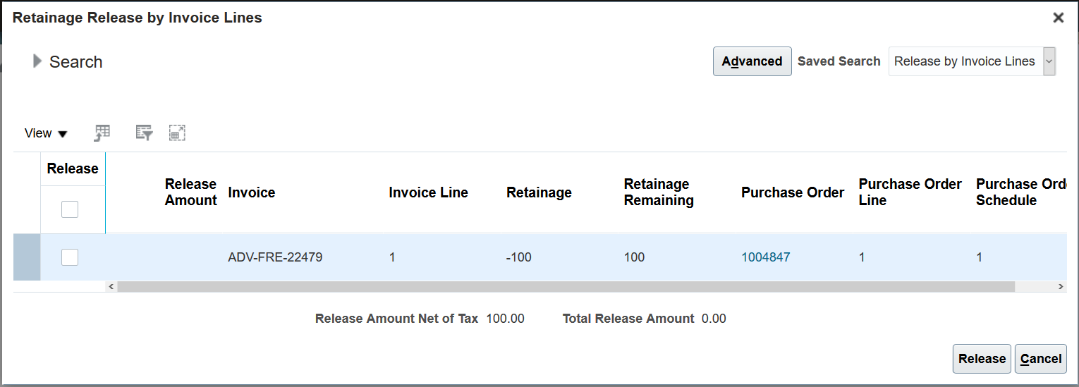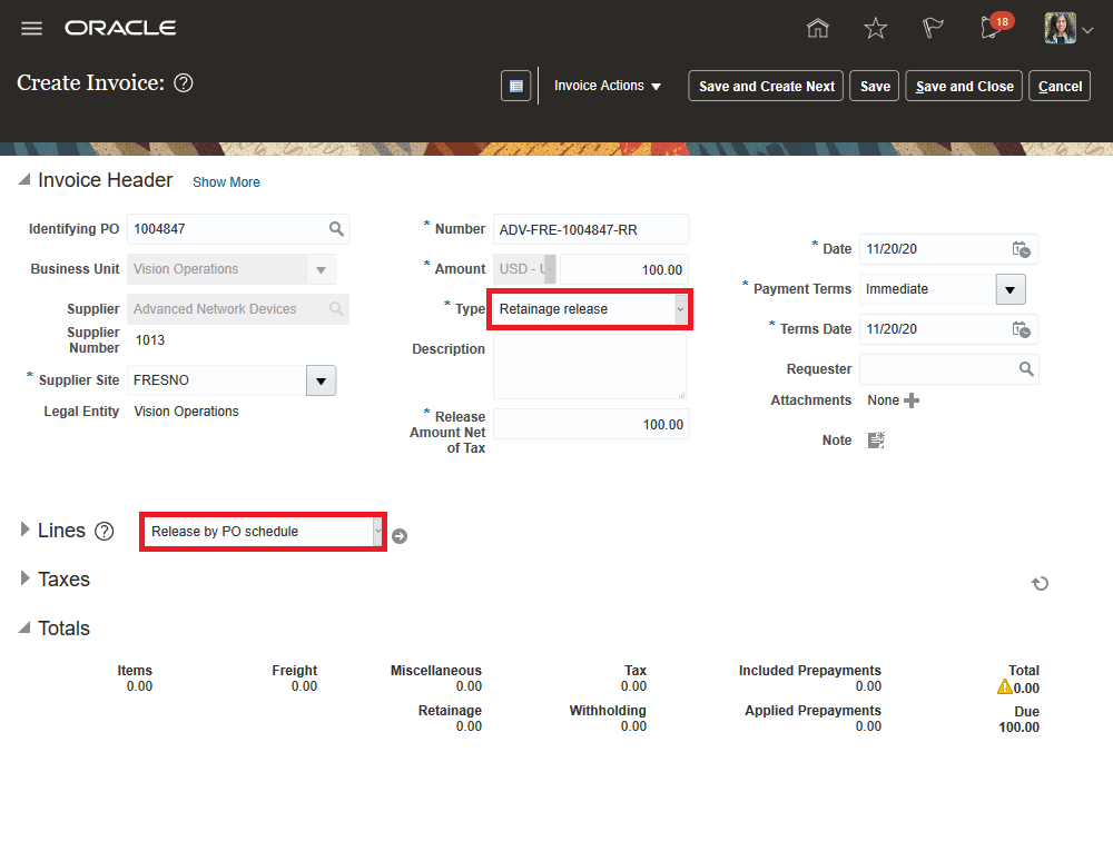 - Creation and Management of Supplier Invoices with Retainage Payment Terms