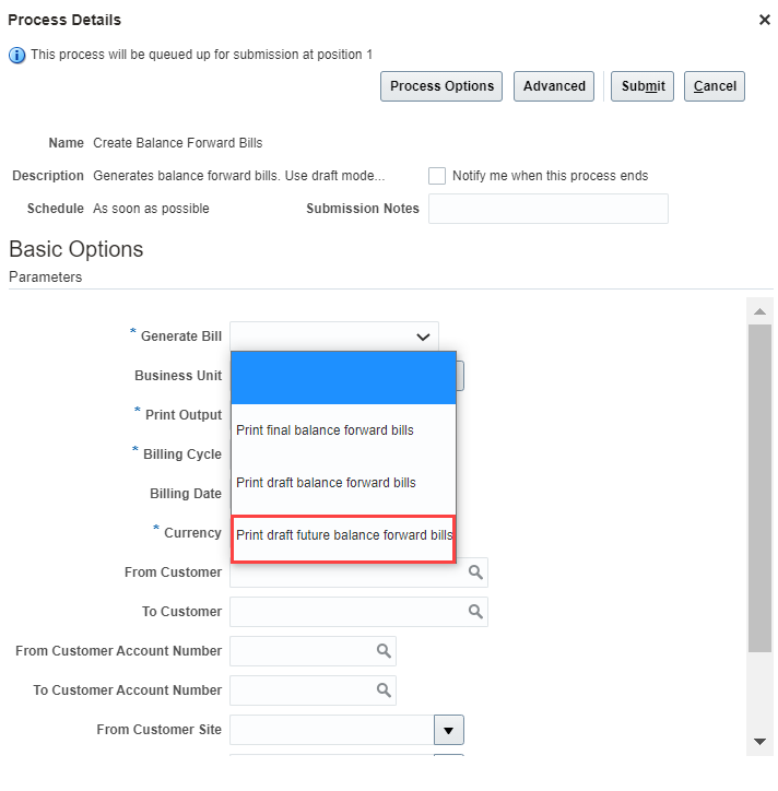 - Balance Forward Billing in Advance of the Billing Cycle End Date