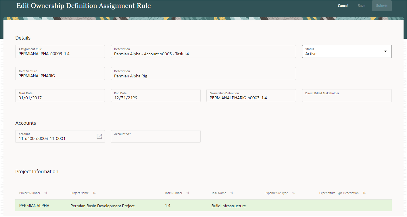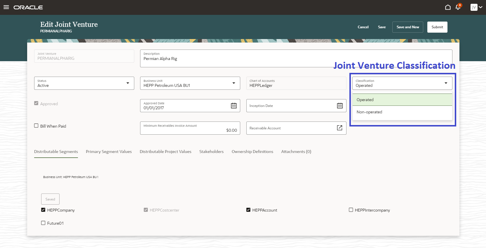 - Joint Venture Ownership Definition and Direct Billed Stakeholder Assignment Rules