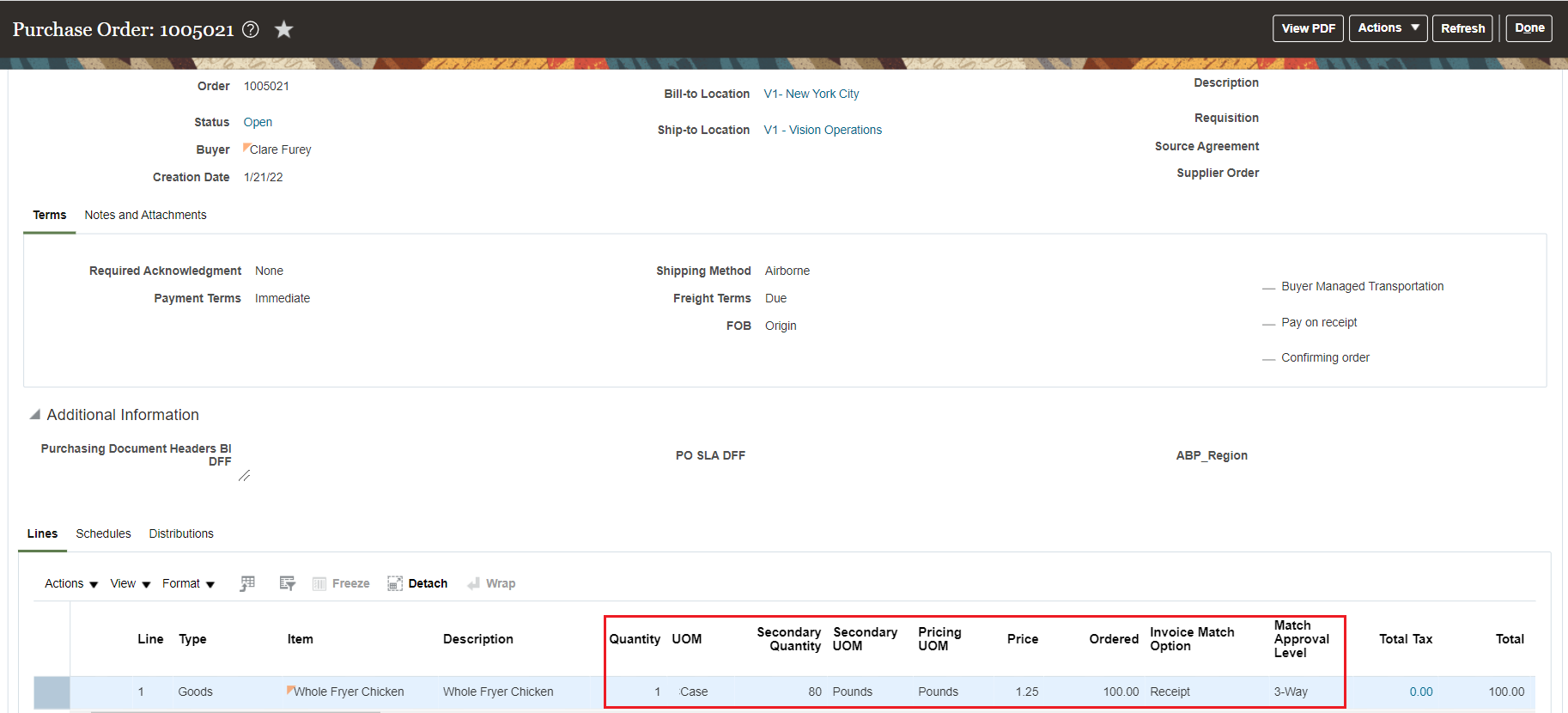 A purchase order with more than 2,000 lines is considered a large purchase order, but you can determine the minimum line count for your large purchase orders based on your specific business needs.