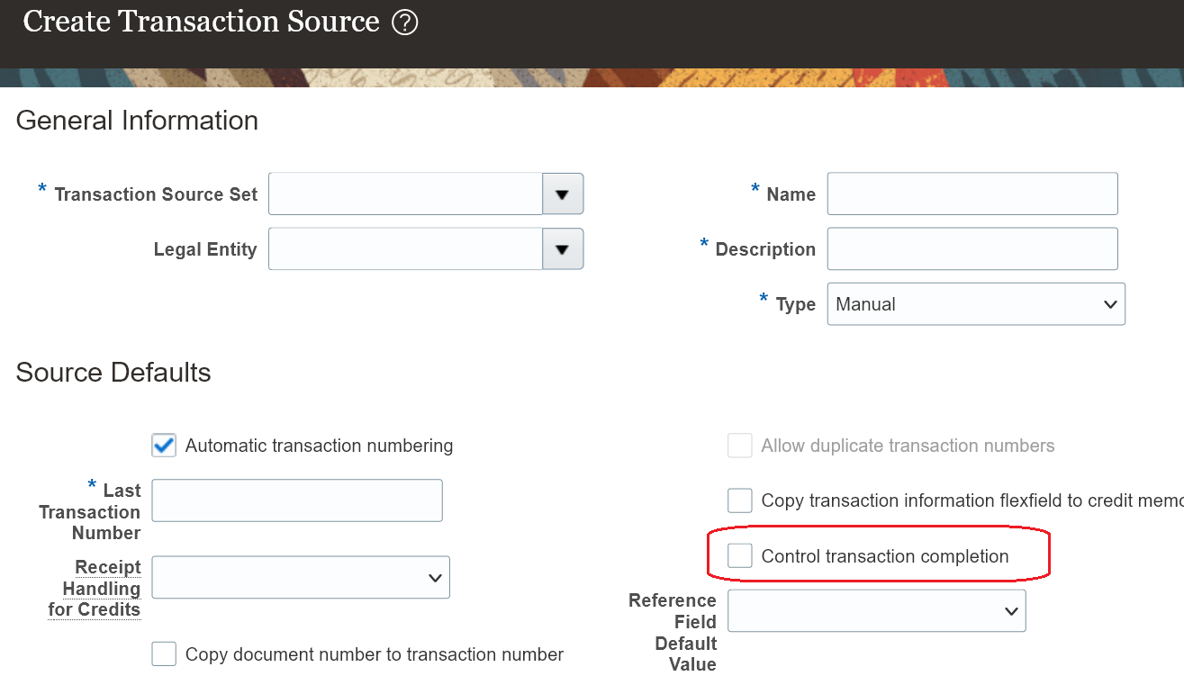 - The validation for Receivables transactions created manually is to generate an error message when the user tries to complete the transaction without the correct TRN. After entering the correct legal entity First Party TRN, the user can complete the transaction.