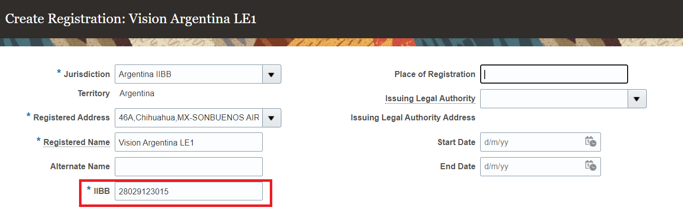 To prevent the creation of Payables invoices and Receivables transactions without a First Party Tax Registration Number, TRN enforcement takes place at the time of Payables invoice validation and Receivables transaction completion.