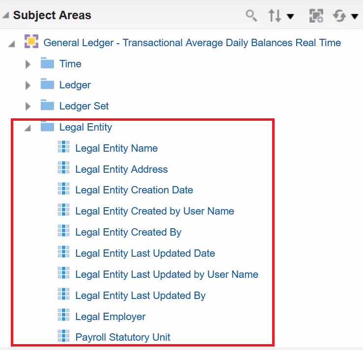 - Legal Entity Dimension Display in General Ledger Subject Areas in Oracle Transactional Business Intelligence (OTBI)