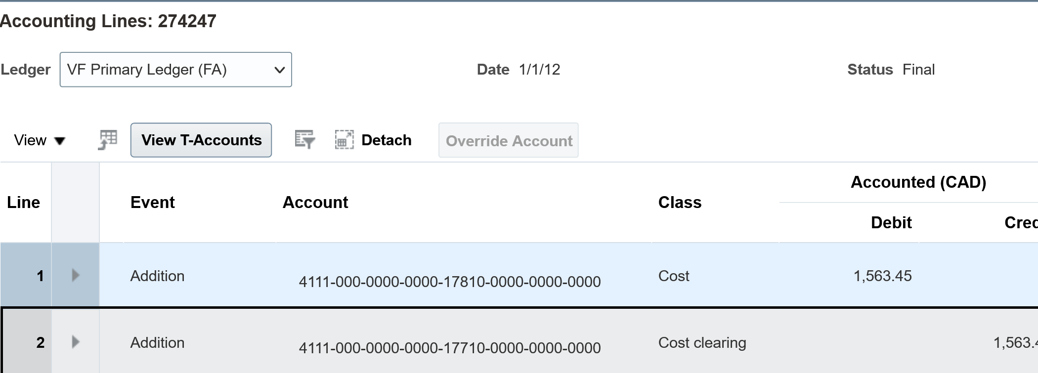 - The data extracted is determined by the legal entity selected in the parameters. The filtering is based on the Balancing Segment Value used in the asset assignments
