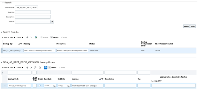 Navigation > Manage Standard Lookups > Lookup type: ORA_JG_SAFT_PROD_CATALOG