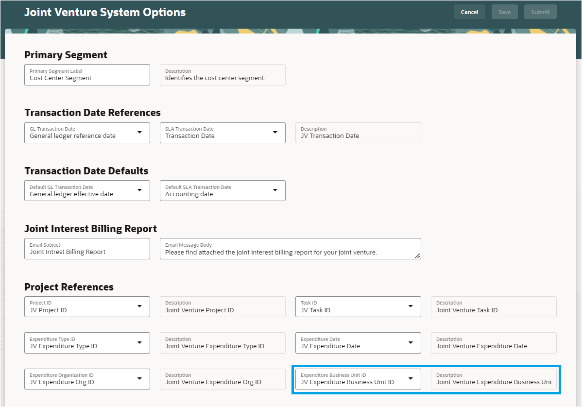 | 29 SEP 2023 | Joint Venture Management | Expenditure Business Unit for Project Costing Adjustments from Joint Venture Management | Updated document. Delivered new feature in update 23D. |