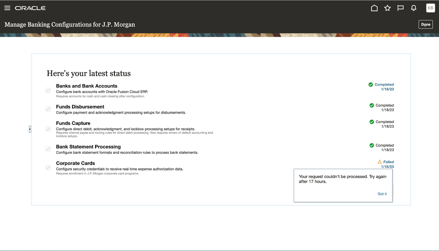 | 12 JAN 2023 | Payables | Embedded Banking Services with J.P. Morgan | Updated document. Revised Steps to Enable |