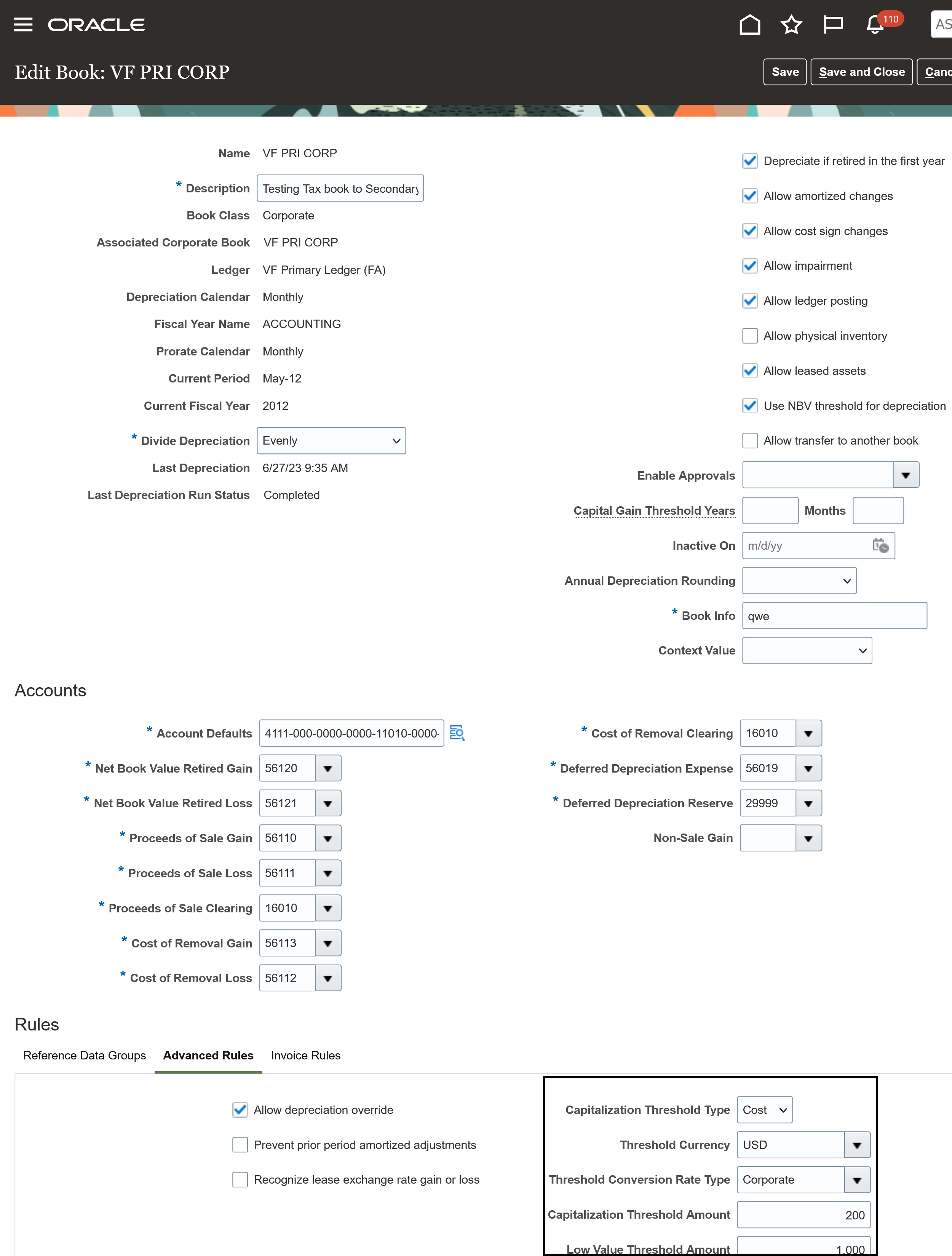 | 14 DEC 2023 | Assets | Segregation of Asset Transaction Entry and Transaction Posting Duties | Updated document. Revised feature information. |