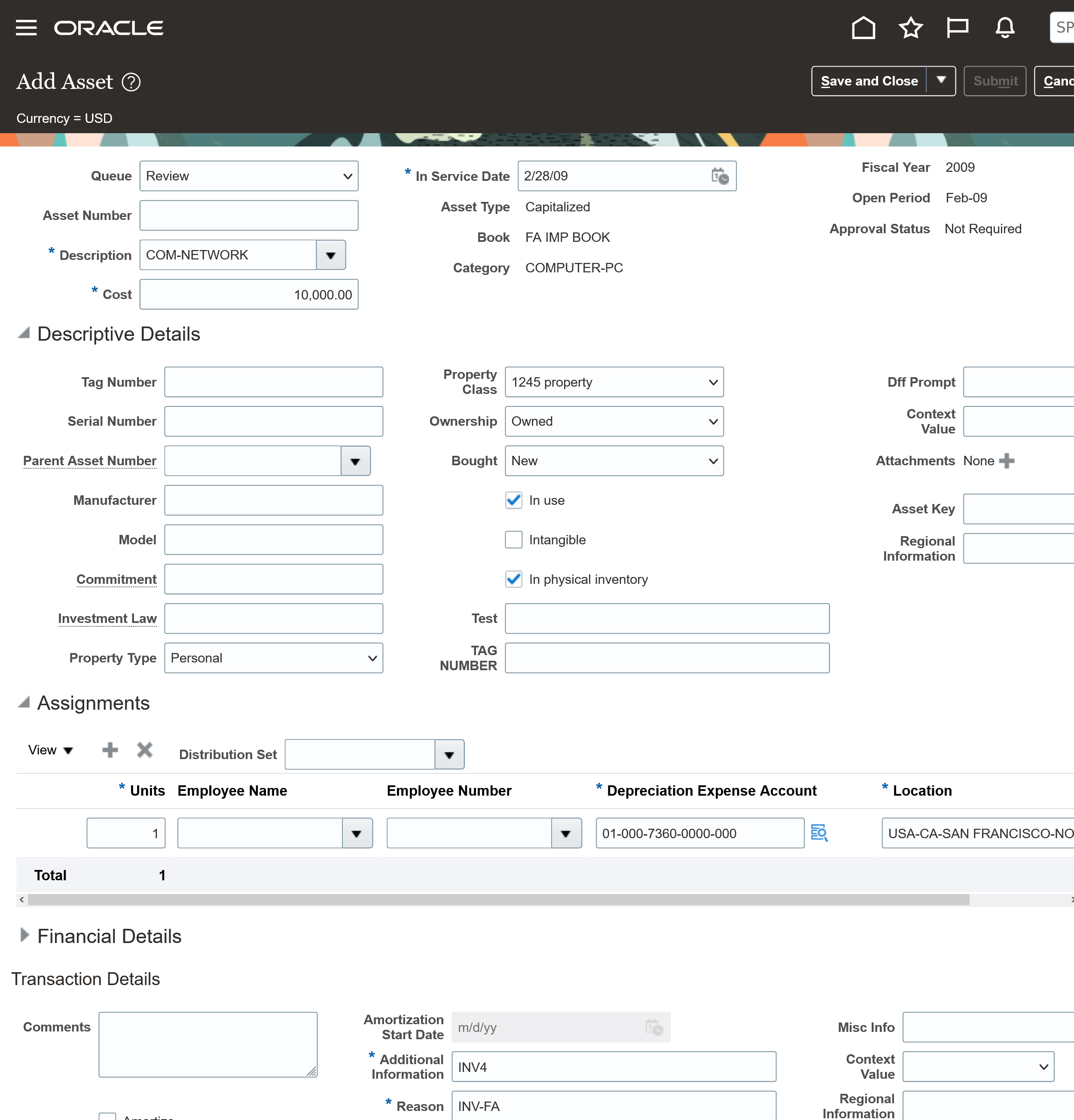 After you enable this feature using opt-in,Segregation of Duties with transaction preparer and reviewer apply only to transactions performed using the Add Asset, Adjust Asset, Transfer Asset and Retire Asset pages.