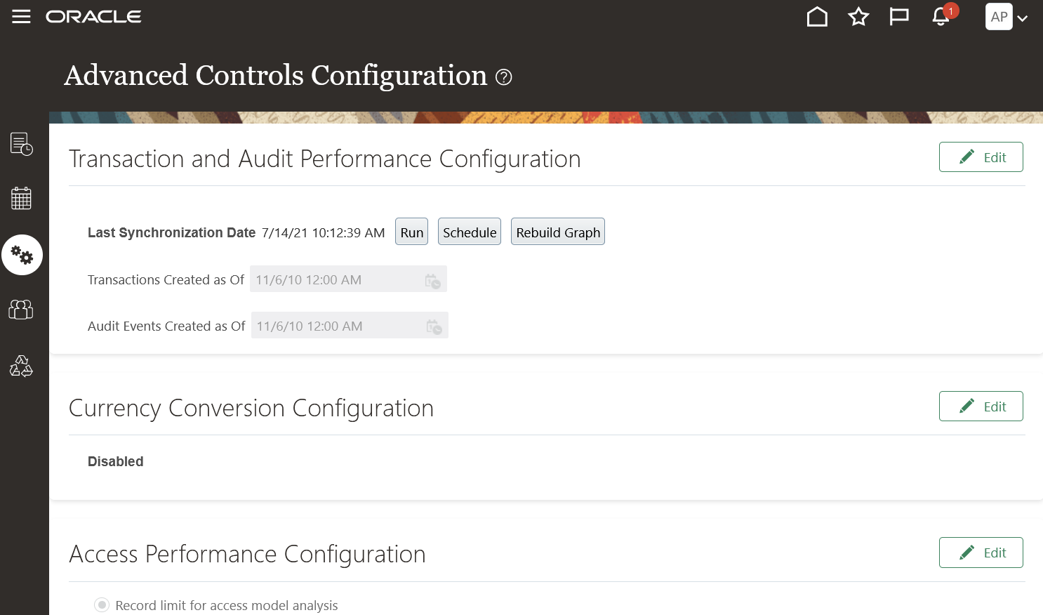 When you use business objects that introduce new attributes, such as these new conversion attributes, you must run the Transaction Data Source Synchronization job. After finalizing your configurations, the first data synchronization job may take a little longer since it is calculating the new Payables Invoice converted amount values.