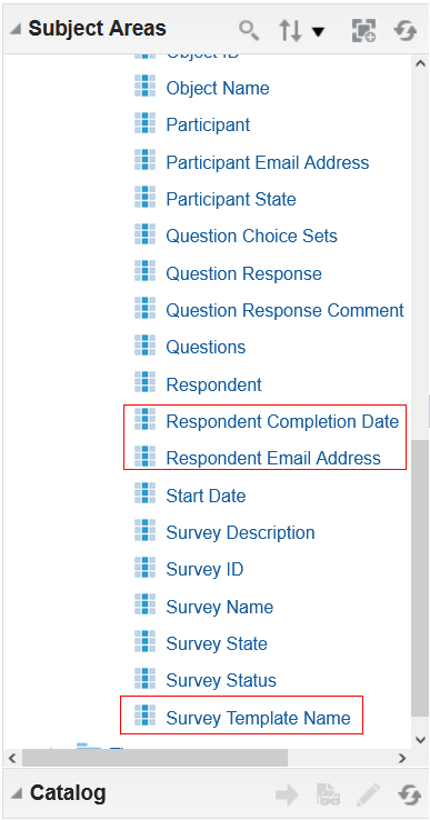 New survey attributes have been added to the Survey Details dimension located in the Risk Management Cloud - Assessment Results Real Time.