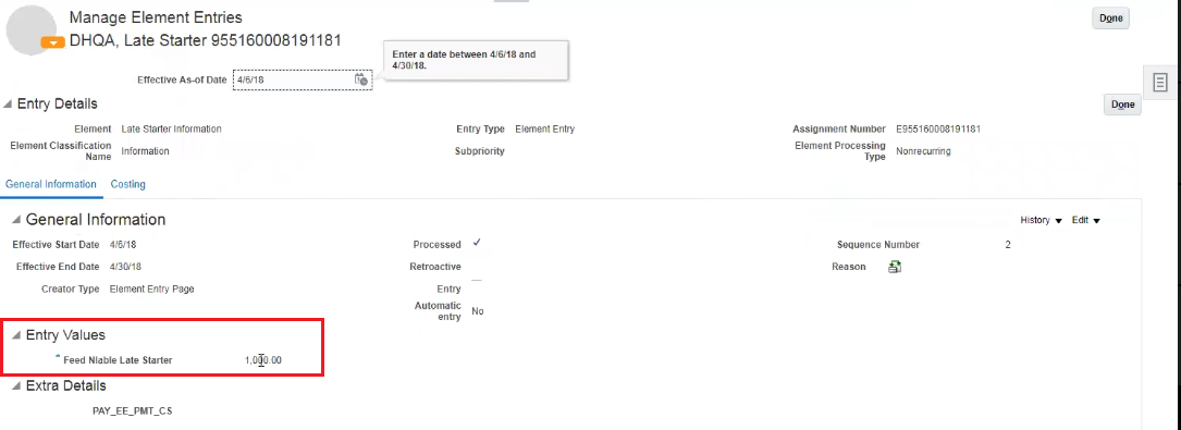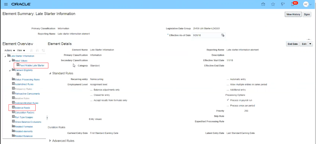 - Create the element eligibility link for the new element's "FLSA Only" indirect element. This sets element entry based on the overtime date passed by Oracle Fusion Time and Labor. Absences and hours are used for calculating overtime premium.