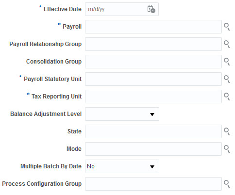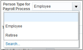 - Select either Employee or Retiree in the Person Type for Payroll Process field.