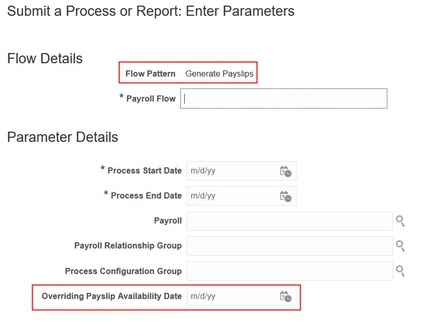 - Use the Overriding Payslip Availability Date Parameter for the Generate Payslips Process
