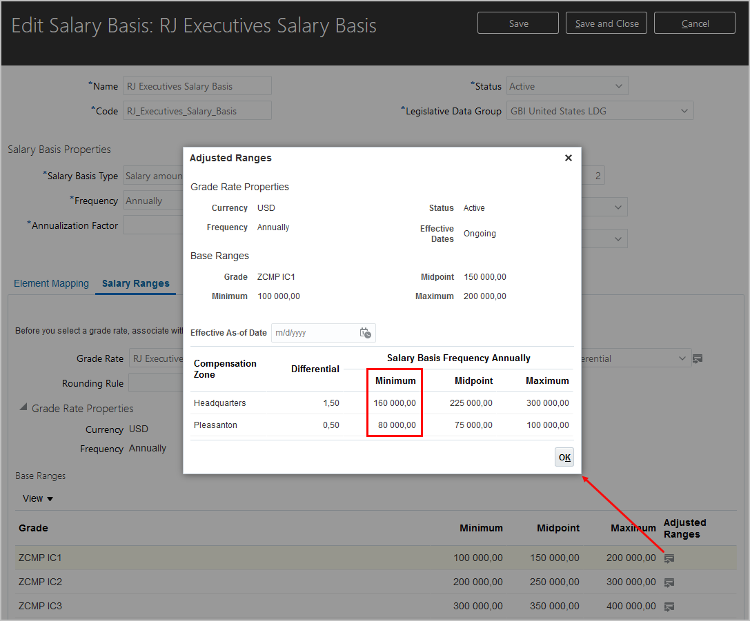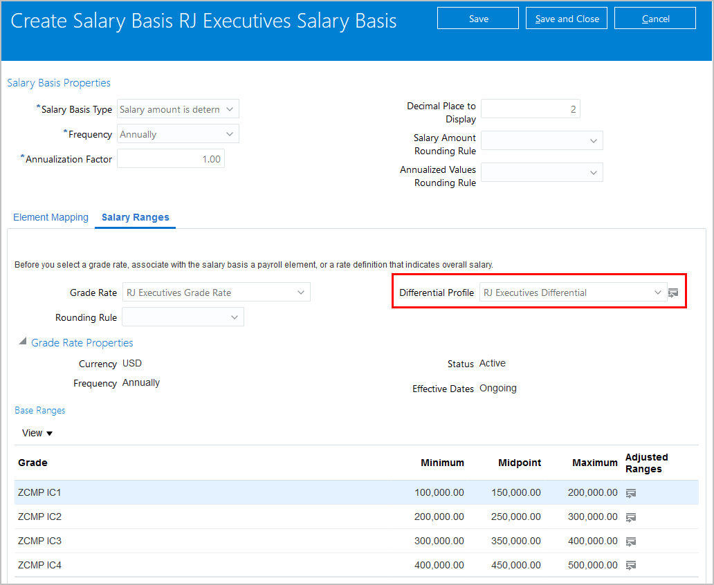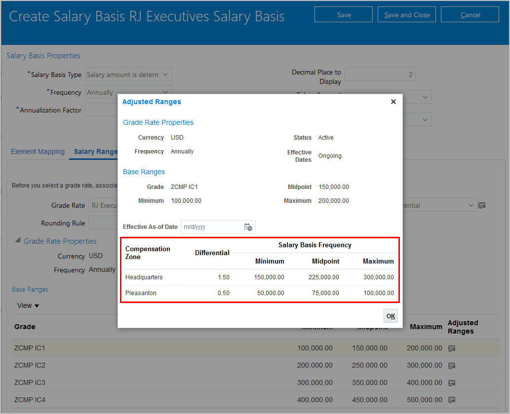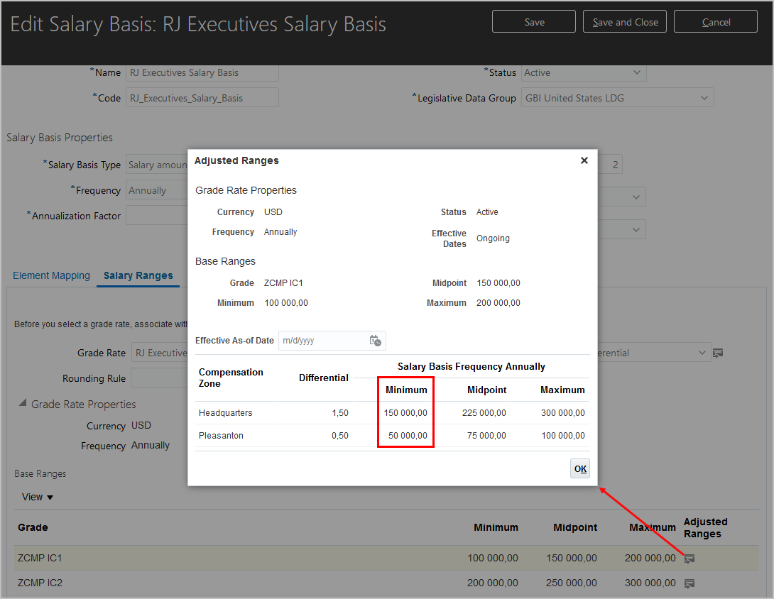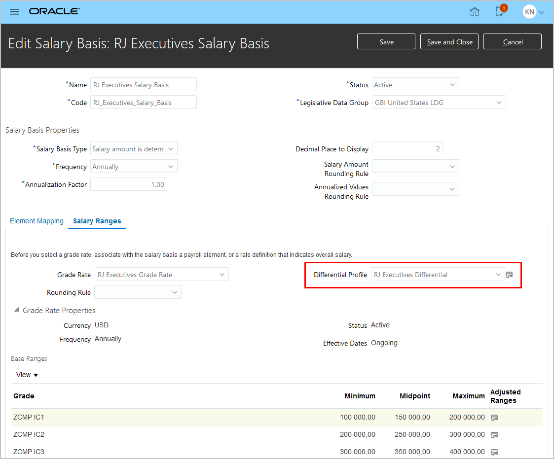 You can calculate rates based on employee’s grade details. For example, you can calculate the annual salary rate based on the grade ladder, grade, and grade step information defined for an employee. When you define a rate definition, you can select a grade rate as a basis for the rate calculation and specify the employment level.