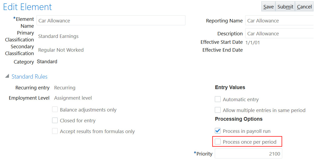 If your employee is eligible to contribute to multiple plans, and you defined their 401 (k) catch-up element prior to Release 20A, you must update the processing priority for the following: