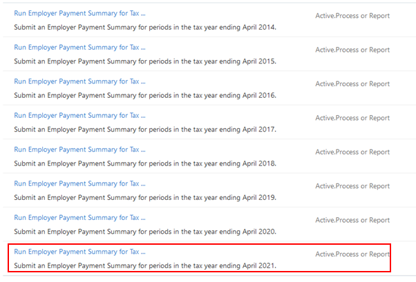 - Real Time Information - Employer Payment Summary for Tax Year 2020-2021