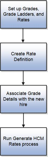 Run the Generate HCM Rates process to calculate the rates based on the information held in the grade tables. Alternatively, view the calculated rate on the salary page.