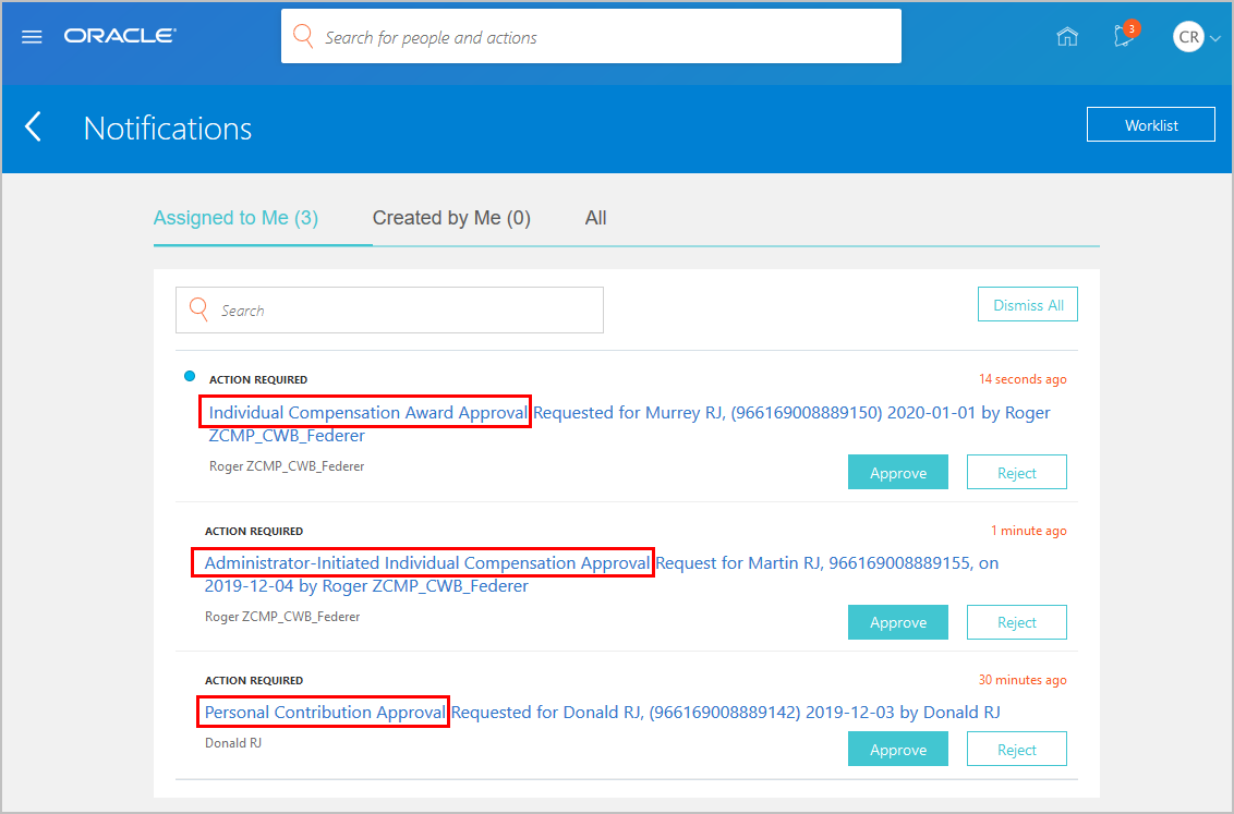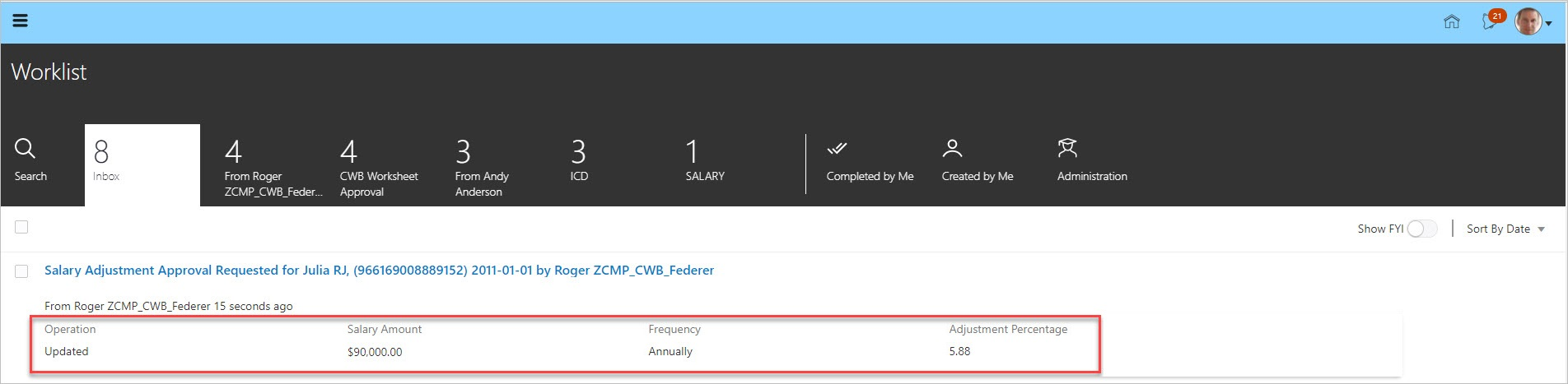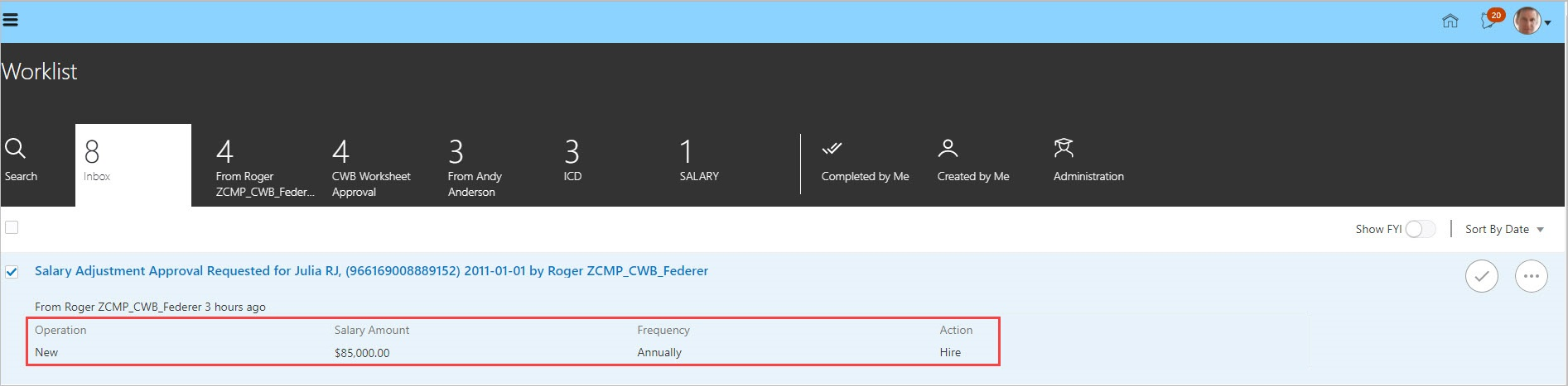 - Preview Salary, Individual Compensation Approval Information in the Worklist
